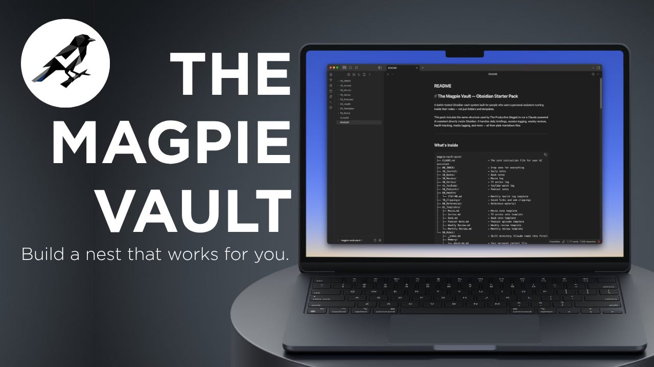 The Magpie Vault is an Obsidian starter pack built around this exact setup. It includes: